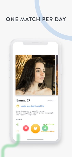 At first I was pretty skeptical, I mean matches everyday? Get real. But for the first two weeks that’s what it was, matches everyday. One of my problem was my matches weren’t exactly close. So it feels like a waste of a day and you can’t set a distance because that costs. It’s odd that a feature like that would cost, it’s pretty normal to want to see someone close. My next problem comes from the 5 star system, I’d understand if it was girls near me... but mostly all the girls are white European Instagram girls. I don’t see how favoring an attractive girl is going to improve my odds of finding someone? I’m average at best, so it seems odd that every single one is just stunning. My last and final problem was after the first two weeks I would rarely get matches. I’d be lucky if I got matches 3 times a week. This is a great idea one match everyday so you have time to think about it. It’s much more personal but some features should be free. And promises should be kept, not just for 2 weeks.