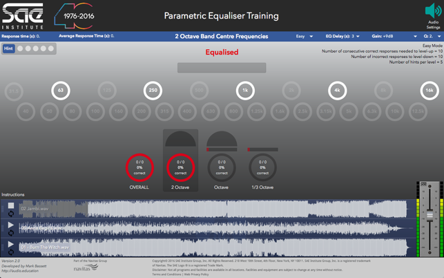 SAE Parametric Equaliser Training is a Technical Ear Training application designed to teach students to identify the centre frequency of a parametric equaliser applied to any imported audio files.