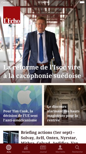Cette application offre toute la richesse de L’Echo: les dernières news, les cotations boursières en temps réel et l’état de votre portefeuille personnel au sein d’une app intelligente gratuite.