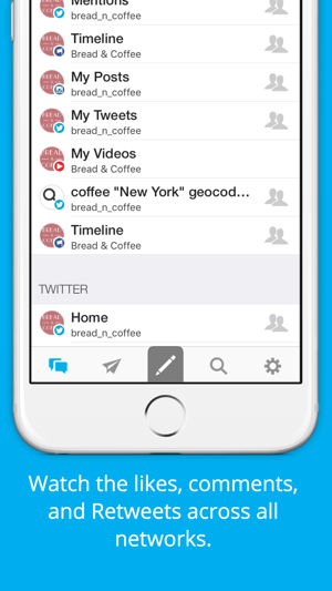 Share and schedule posts from your Twitter, Facebook, Instagram, and LinkedIn accounts all from one app.