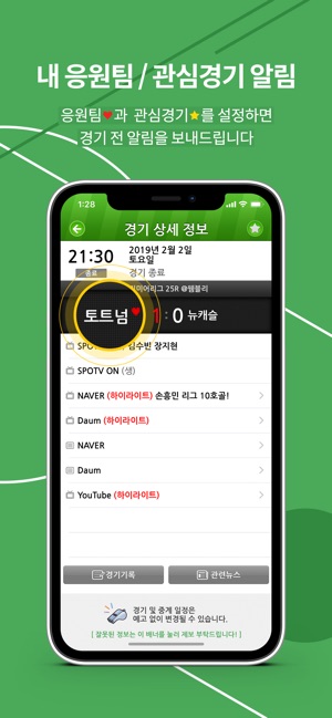 또한 단순히 일정과 스코어 정보만 열람하는 것이 아니라, 동영상 생중계와 하이라이트 정보를 연동해 해당 서비스를 제공하는 페이지로 바로 이동할 수 있게끔 편의성을 극대화 했습니다.