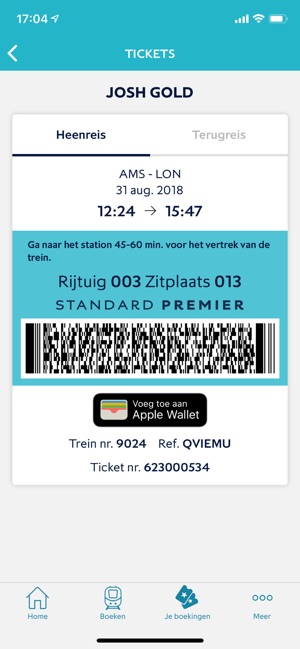 Papieren tickets zijn zo jaren 90. Download nu gewoon je ticket in de app als een e-ticket. Dat is goed voor het milieu en bovendien supermakkelijk. Je hoeft niet een handtas om te kieperen om je dan met een rooie kop te herinneren dat het ticket thuis bij de kapstok ligt. Gewoon even scannen aan de e-gates en weg ben je.
