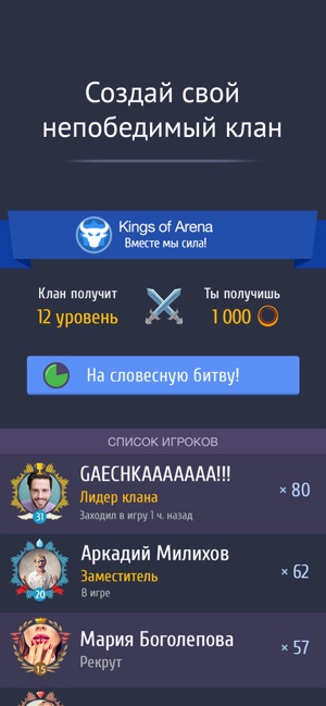 • Новое:Теперь кланы, в которых состоят читеры не будут допускаться до участия в клановых турнирах. Играйте честно! • Новое: Номинация для спринта - «Самое быстрое завершение кланового задания». Ставьте новые рекорды!