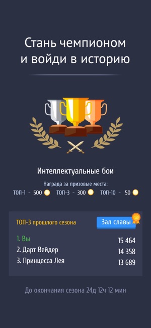 ГЛОБАЛЬНАЯ БИТВА ИНТЕЛЛЕКТОВ Турниры — это отличный шанс проявить себя. Битва со всеми участниками игры на одном игровом поле — поиск слов никогда ещё не был таким захватывающим.