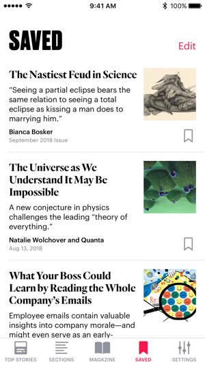 I love this app. It works so well when I don’t have time to bring the print version with me, or when I’m on the go. I love that I don’t have to read the articles in a PDF type format—but instead each one is sorted into a completely digitized and easy to read version. My problem is that there is no way to save where I am in an article if I decide to finish reading it later. Every time I close the app I open it back up and I have to find where I was reading last, which is quite difficult considering that many of the articles are in long essay format. Please add a feature that remembers where I am in each article!
