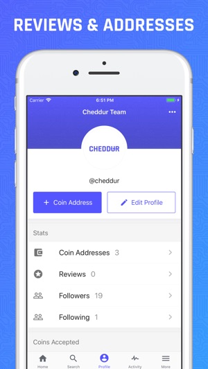 * Share your coin addresses with friends, family, and followers
