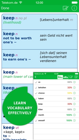 • Listen to numerous keywords spoken by native speakers and practise your pronunciation: available for German, English, French, Spanish, Italian, Russian