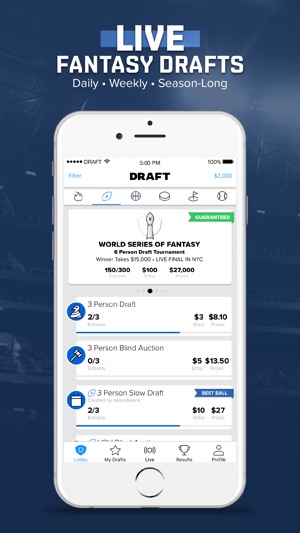 • Blind Auctions! DRAFT is the only app where you can play daily or weekly versions of the traditional season-long format