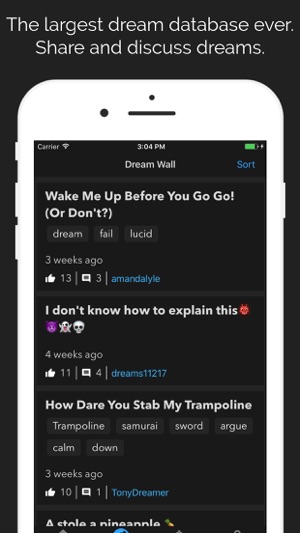 Have a dream that you wish to share with others? You can make any dream a public dream. The dream will then appear on the dream wall along with other public dreams. You can comment on and like the dreams of other users or read the comments that users leave on your public dream. The dream wall is a dreaming social network built right in!