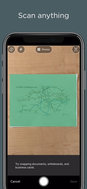 • Use the camera to effortlessly scan, digitize, and organize your paper documents, business cards, handwritten notes and drawings
