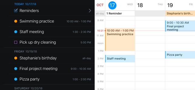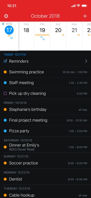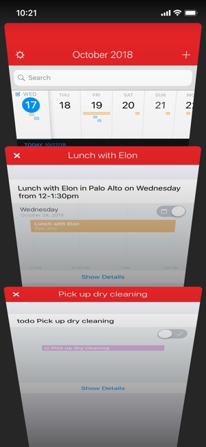 I love this calendar app, but that makes a couple things I don’t like stand out all the more. The first is the way you pull down to pop up the full month. I feel like the natural gesture would be swipe it back up to dismiss it, but instead it acts like an old-fashioned window shade where I pull it down to release the tension. Not intuitive, but there is a tutorial. Just would rather have it the opposite way. The second issue is the way it colors the calendar events. When you sync a Google calendar, it gives the entire calendar one color instead of the individualized event colors that Google’s own calendar app supports. I want all my events in a single calendar, but I want to add some small splashes of color to provide easier identification of certain events. Instead every event is black and hard to distinguish. A final issue is a rare glitch where when I am adding multiple events in a row, I get a weird animation hitch where it took the event, but didn’t snap all the way back to the calendar. Instead it is frozen in a window within a window and the only way out is to force quit the app. Only happens when adding a lot of events quickly, like my work schedule for the month.