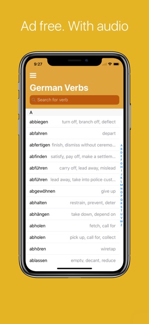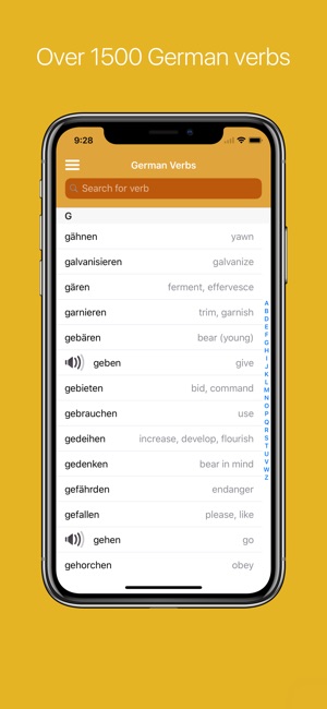 View over 1500 German verbs in 16 tenses. With simple navigation and built in search, you can find the verb you need in seconds.