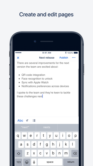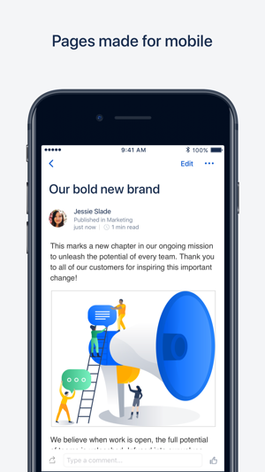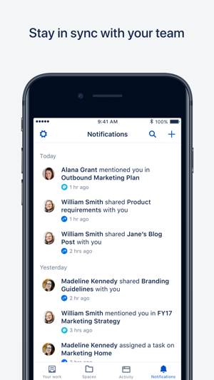 • Stay up to date with your team's work with push notifications for @mentions, replies, page shares, and tasks