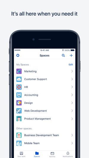Stay in sync with your team, wherever you are, with the Confluence Server app.