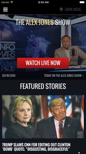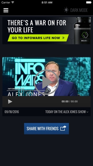 Watch the Alex Jones Show live from your phone or tablet. Get the latest headline news free from the distortions of the main stream media . Every story is organized by category so you can find the information you want, when you want it. This app also features "Radio Mode" so you can listen to the Alex Jones Show while you are on the run.