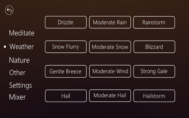 The mixer feature allows you to mix and combine all your favourite sounds by adjusting individual sound levels to create unlimited variations of weather, nature and other white noise sounds. Calm yourself relieving stress and anxiety with easy to use user interface.