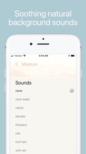 - For unguided meditation, set your custom mediation duration, background sounds (or silence), and interval chimes