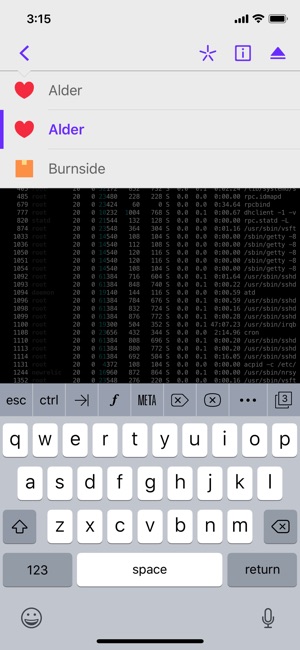 • Fixed a possible crash when using Agent Forwarding • Fixed an issue where the clear command triggered odd scrolling behavior • The list of keys is now sorted alphabetically by name • Fixed an issue where updating a key name did not sync the new name • Sync is now reauthorized after exceeding failed passcode limit • Creating sync account with mismatched passwords now displays the appropriate error message • Fixed the unreliable ‘Reset Autocomplete Data' button on iPad • Fixed a text rendering issue on embedded devices • Fixed an issue where connecting in landscape and rotating to portrait subverted fullscreen • Fixed an issue where rotating iPad to portrait after dismissing keyboard clips terminal area • Fixed an issue where server created while logged out of sync was never synced • Fixed an issue whereSoft F8 and F16 keyboards didn’t emit code on half of the buttons • Switch connection view to Quick Connect when active server deleted • Fixed an issue where Sync locks server items • Fixed an issue where swiping to switch connections led to a crash • Fixed an issue where the keyboard disappeared after orientation change • Fixed an issue where a white view could get pushed when connecting to invalid ip • Fixed an issue where the new iphone 6 landscape arrow keys didn’t work • Fixed an issue where Agent Forwarding didn’t use keys that weren’t associated with any server • Fixed an issue where Panic Sync login view didn’t limit account passwords to 8 or more characters • Disabled Connect button text color adjusted • Made folder selection table grouped • Moved "Done" Button in Settings to top right • Fixed an issue where there was an all black screen after connecting and locking/unlocking • Fixed an issue where iPhone 6+ Server Settings • Fixed layout problems in Sync modal on iPhone 6 Plus landscape • Fixed an issue where having your finger on the touch id button when launching the app caused the app to freeze if touch id was enabled. • Added the ability to copy private keys • Fixed an issue where if the output was on last line, "clear" didn’t scroll • Fixed an issue where swipe to delete was not enabled in the Keys table • Made a pretty “About Prompt" screen