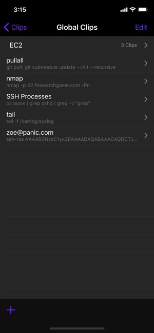 • Clips Put your most-used commands and text bits into clips and access them with a single tap via Prompt’s keyboard bar. Clips can be stored globally or per-server.