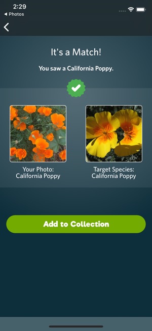 you can now see your own photos of species that you've collected in the app