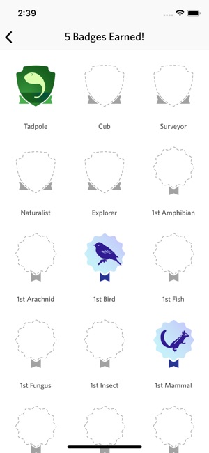 • Earn badges as you photograph new species.