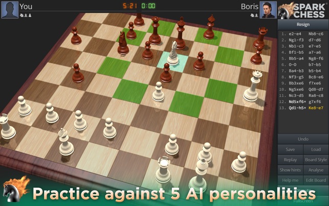 SparkChess is the only chess game on Mac that puts fun first. With a choice of boards, computer opponents and online play it delivers a first-class game of chess that’s as accessible to experts as it is to novices, kids and anyone else who wants to discover how enjoyable this ancient strategy board game really is.
