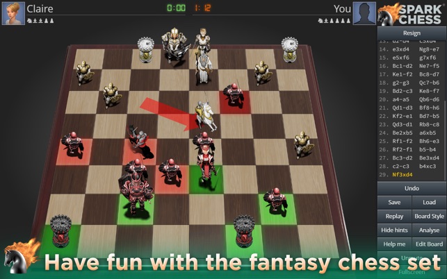 * Choose from different boards: 2D, 3D and a stunning fantasy chess set.