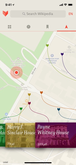 NEARBY PLACES: Discover interesting Wikipedia articles about the area around your location. Or explore any other spot in the world. It’s fun with our signature map visualization.