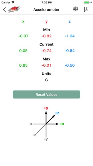 - Measure minimum, current, and maximum acceleration in each of your mobile device's accelerometer axes.