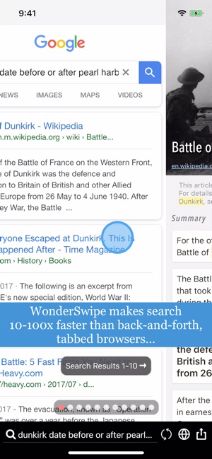 3. No tabs: Easily swipe through search results, no back & forward in browser history or fiddling with background browser tabs